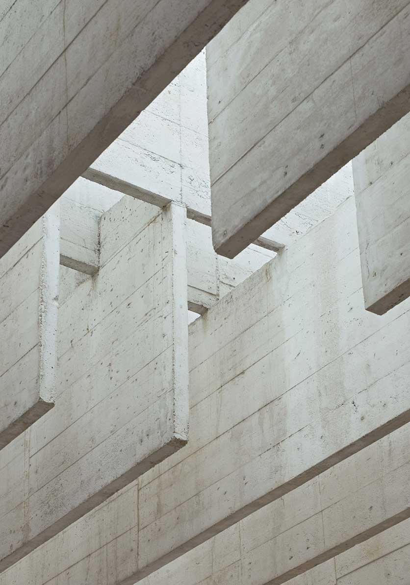 O tratamento da luz natural, projetada através de uma consideração por coberturas compostos em formato de grelha dupla de vigas de concreto, permite filtrar a luz solar e criar um ambiente com iluminação difusa, estável e suave, homenageando o céu nórdico em plena Veneza.