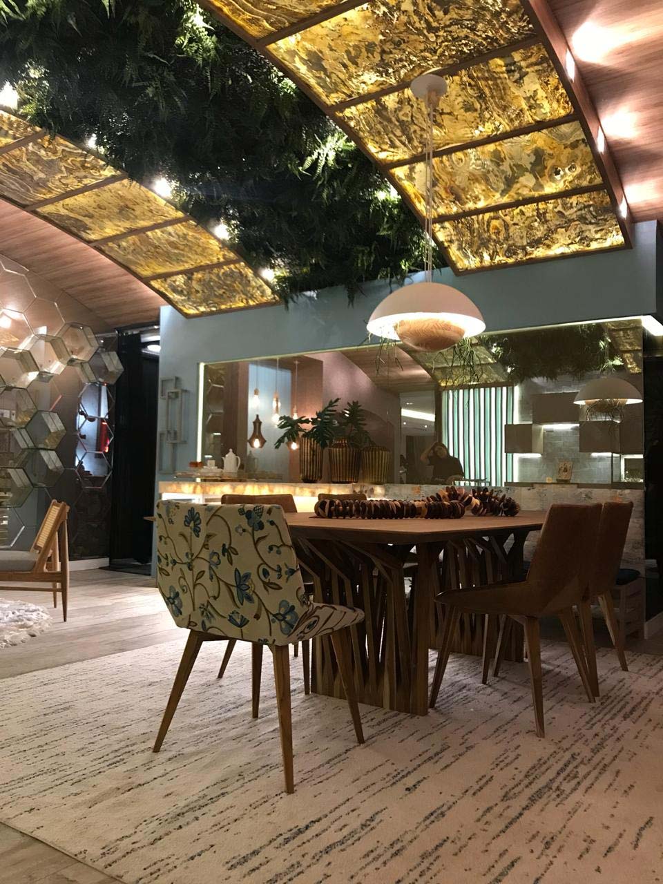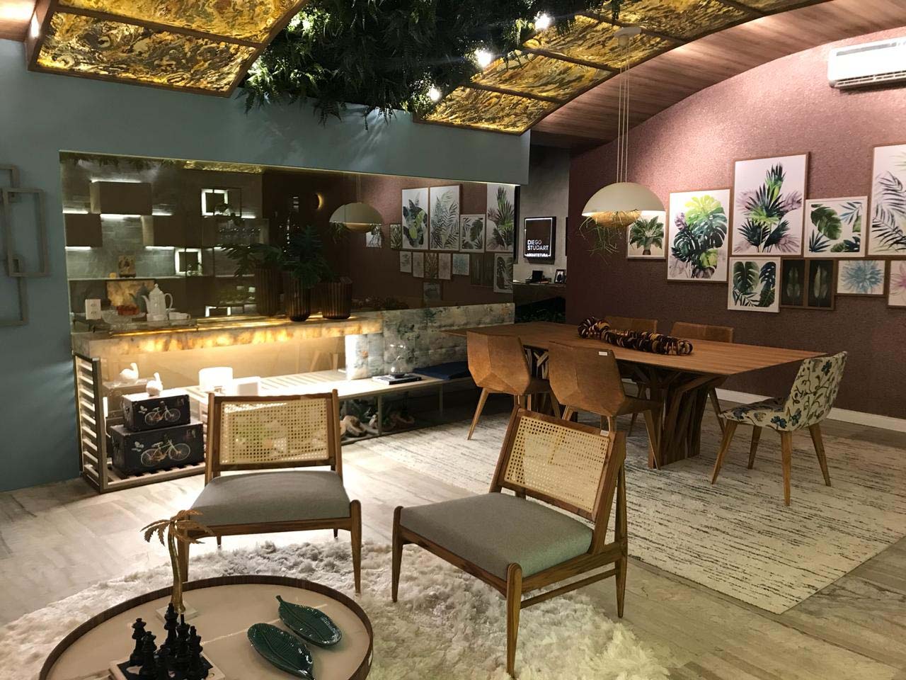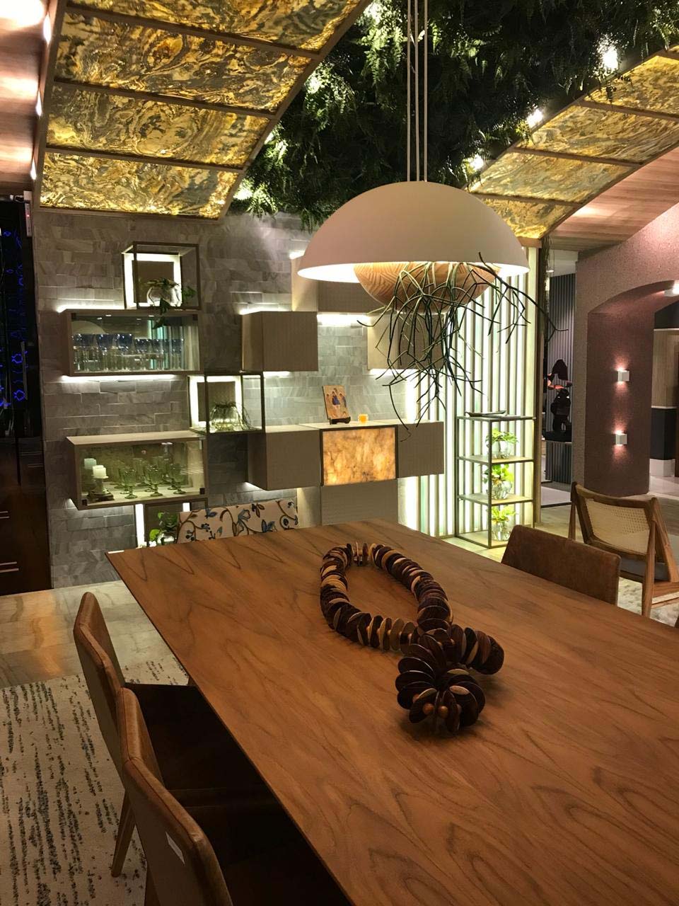 Guiados pelo tema A Casa Viva, os arquitetos Cibele Parreiras, Elias Petruço & Felipe Costa, parceiros da Idélli Fortaleza, criaram dois ambientes Sala de Jantar e Hall Entrelaço, respectivamente, com foco na valorização da cultura e da arte cearense.