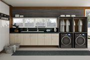 Priorize a fluidez e a usabilidade no projeto, lembrando que haverá máquina de lavar e secar, tanque e diversos itens que precisarão ser armazenados neste ambiente. Atente-se para as saídas de água e energia elétrica.