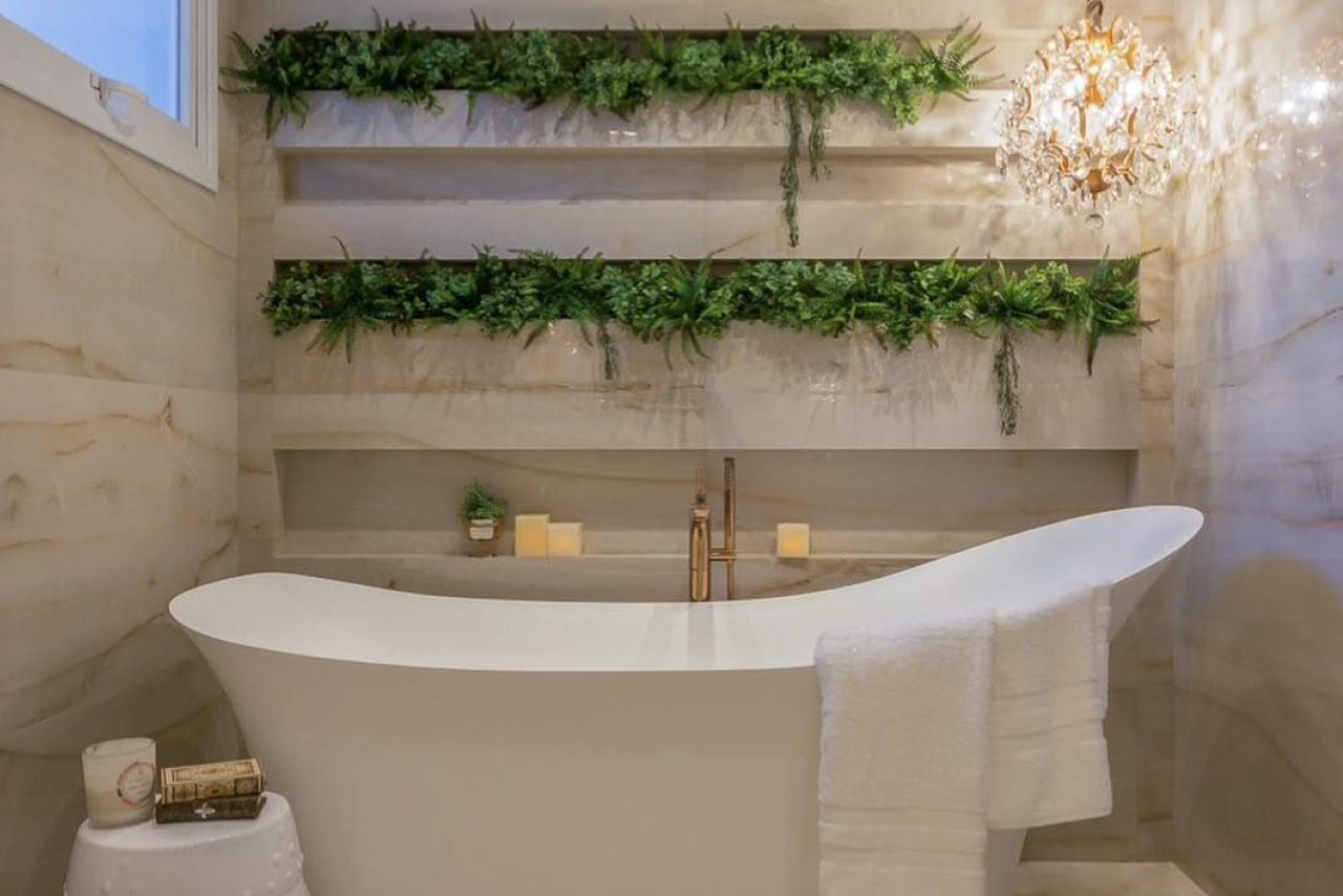 Plantas são bem-vindas em todos os cômodos da casa. Mas sempre se pode inovar! A dica é investir em jardins verticais dentro do box. Para isso, plantas como babosa, lírio-da-paz, espada-de-são-jorge e comigo-ninguém-pode são boas apostas.