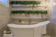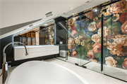 Esqueça os revestimentos cerâmicos em todo o banheiro. A onda agora é investir no papel de parede. Se você deseja apostar nessa tendência, lembre-se que, para áreas úmidas, o ideal são os papéis vinílicos. Importante, também, evitar instalá-los no box para que não haja problemas com descolamento ou desbotamento do material.